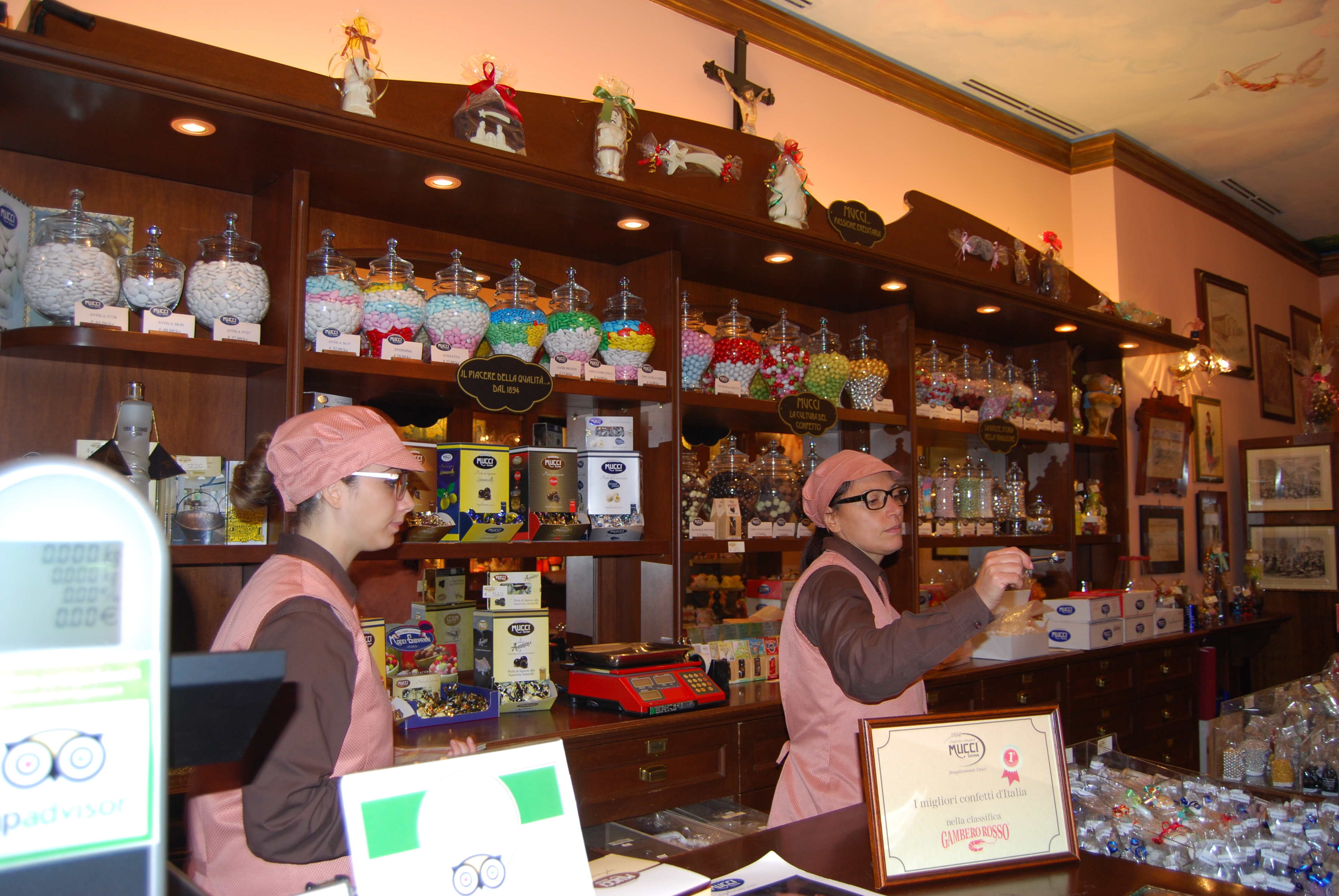 A particularly interesting place in Andria is the traditional confetto (confectionary) and chocolate shop of Giovanni Mucci located opposite the cathedral. Founded in 1894, the business continues with very traditional methods and secret recipes, and has won awards as the very best chocolate/sweet producer in Italy. The shop doubles up as a museum (Il Museo del Confetto), using the basement where production originally took place. Go into the shop, mention the museum, pay 2 euros per person and the staff will treat you to a description of the products (with samples) and a guided tour of the small museum (it takes 30-40 minutes in all). You don't have to buy anything from the shop, but it must be a rare visitor who doesn't. This is the one place in Andria which does promote itself to visitors -there are many direction signs for Il Museo di Confetti, follow these and you will reach the cento storico.