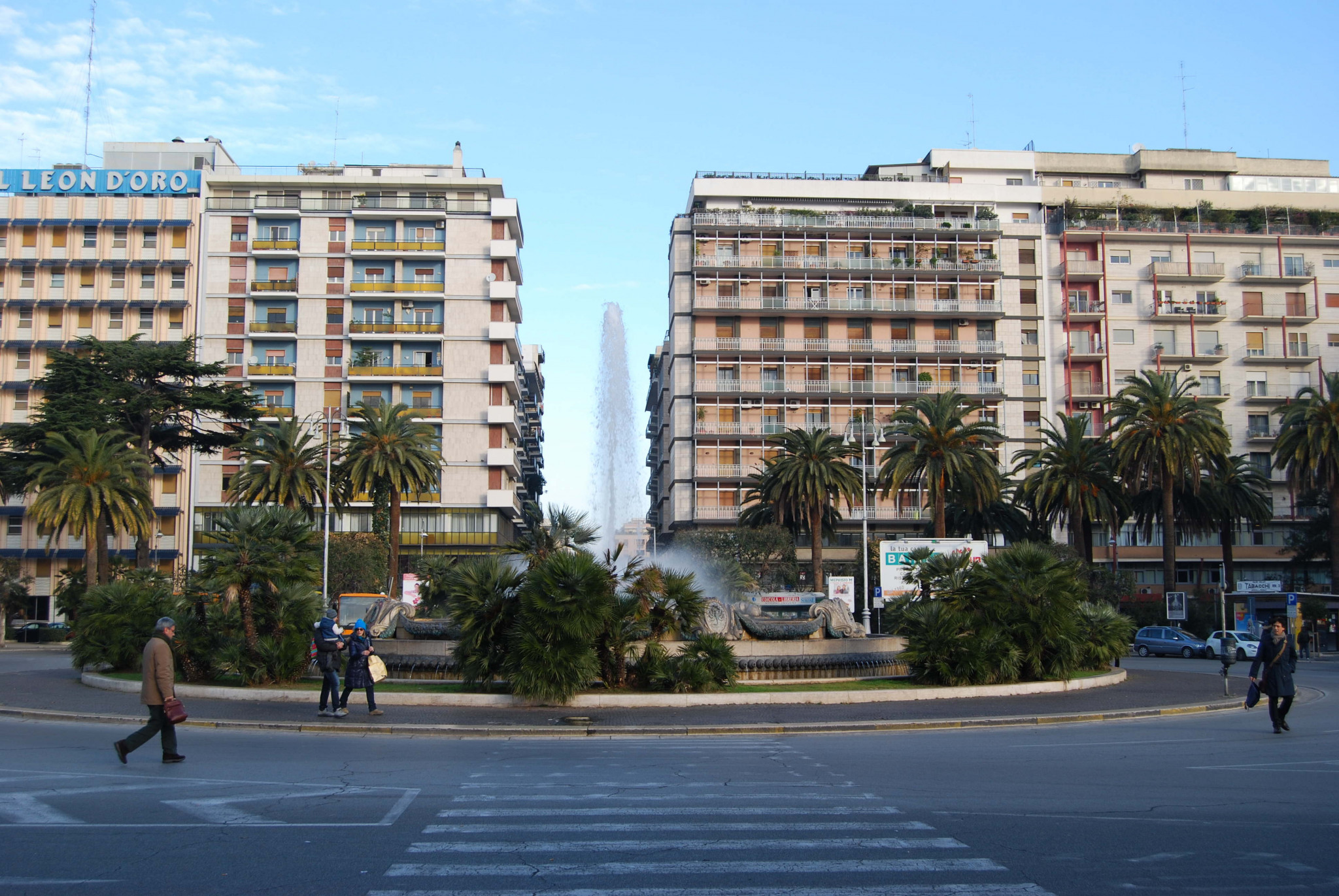 The Old City adjoins a busy area next to the sea, with a harbour and fish market (the old fish market is being redeveloped as an exhibition centre). From there a busy road runs alongside the sea, flanked on one side by a pedestrian promenade, on the other by majestic buildings interspersed with gardens. The most prominent of these buildings, about 10 minutes walk from the Old City, is the Palazzo della Provincia, headquarters of the Bari Province.