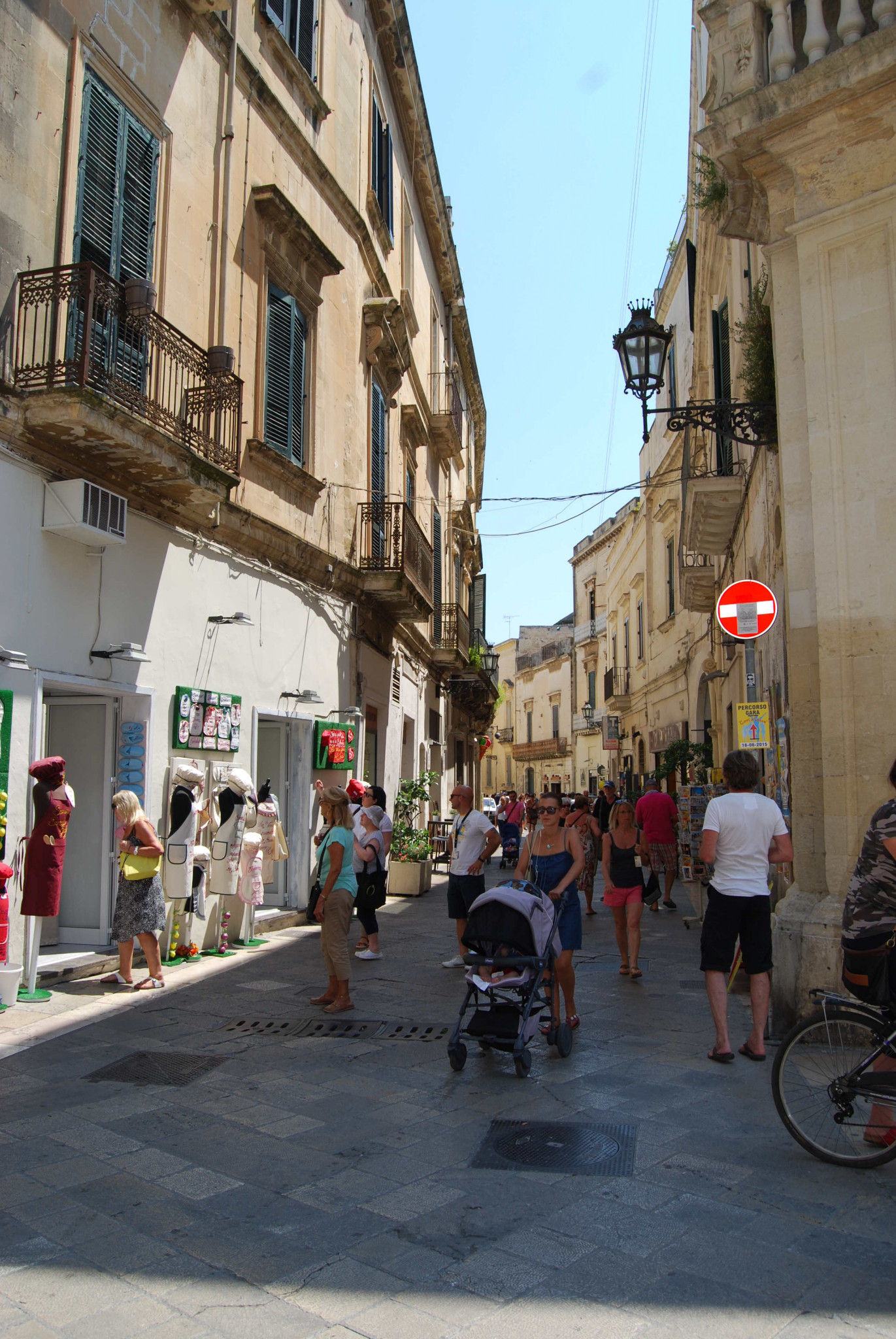 This is a pedestrianised street with good shopping options and lots of bars, pastry/cake shops and restaurants. Several shops specialise in papier-mache figures, a traditional artistic feature of Lecce. Via Vittorio Emanuele connects the Piazza Duomo with the Piazza Sant'Oronzo, the civic/commercial centre of Lecce. It is a lively street, especially in the evenings. You will be approached by people inviting you to sample cakes and pastries, for which Lecce is justifiably famous.