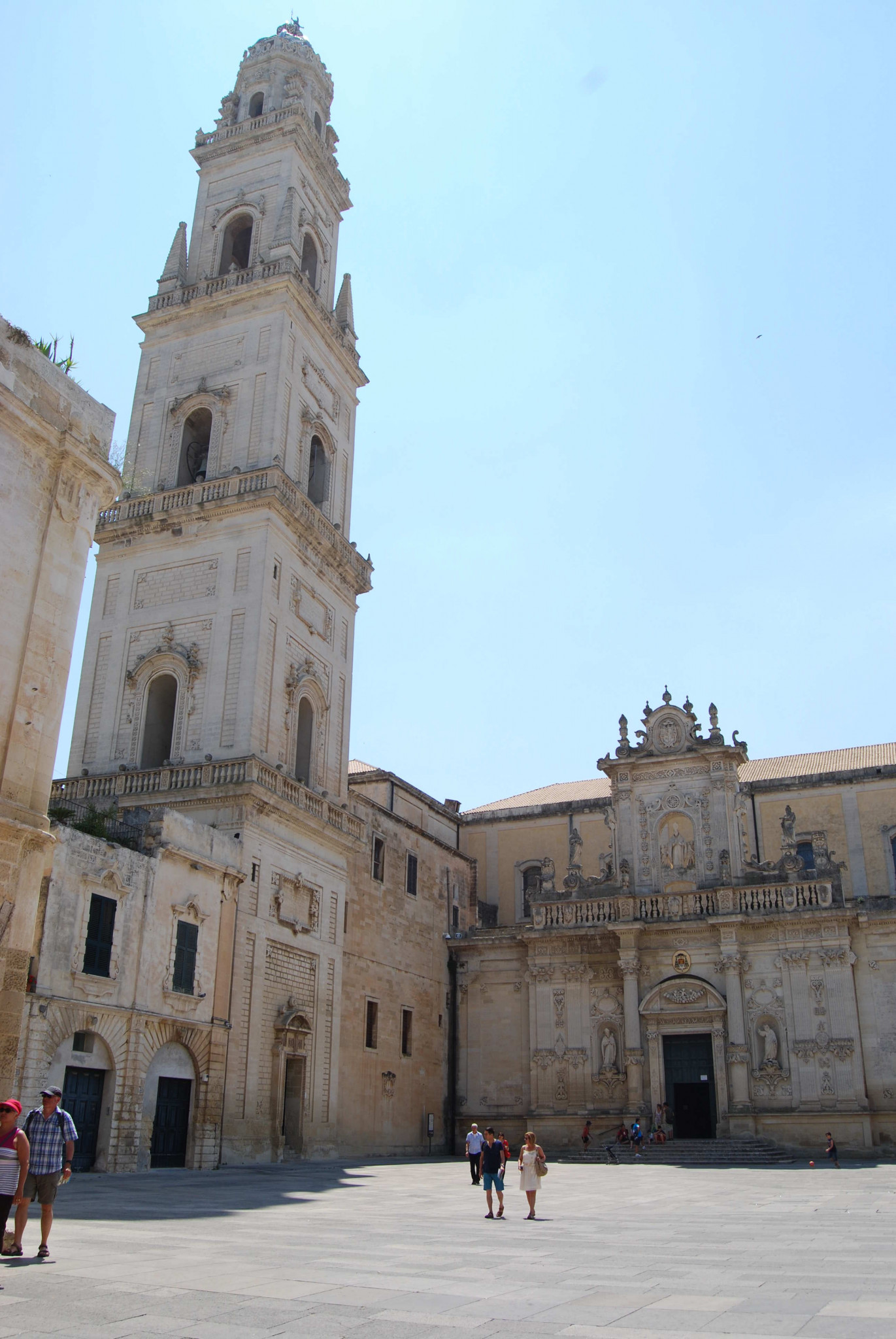 Lecce, with a population of 95,000, is the largest city in the south of Puglia. It is probably the region's main tourist centre, and indeed in the south of mainland Italy generally. It is sometimes called "the Florence of the South", which is inaccurate and does not do justice to either place. The centre of Lecce is a concentration of baroque, predominantly religious, buildings, the result of an explosion of development in the 17th century when the city became especially prosperous.