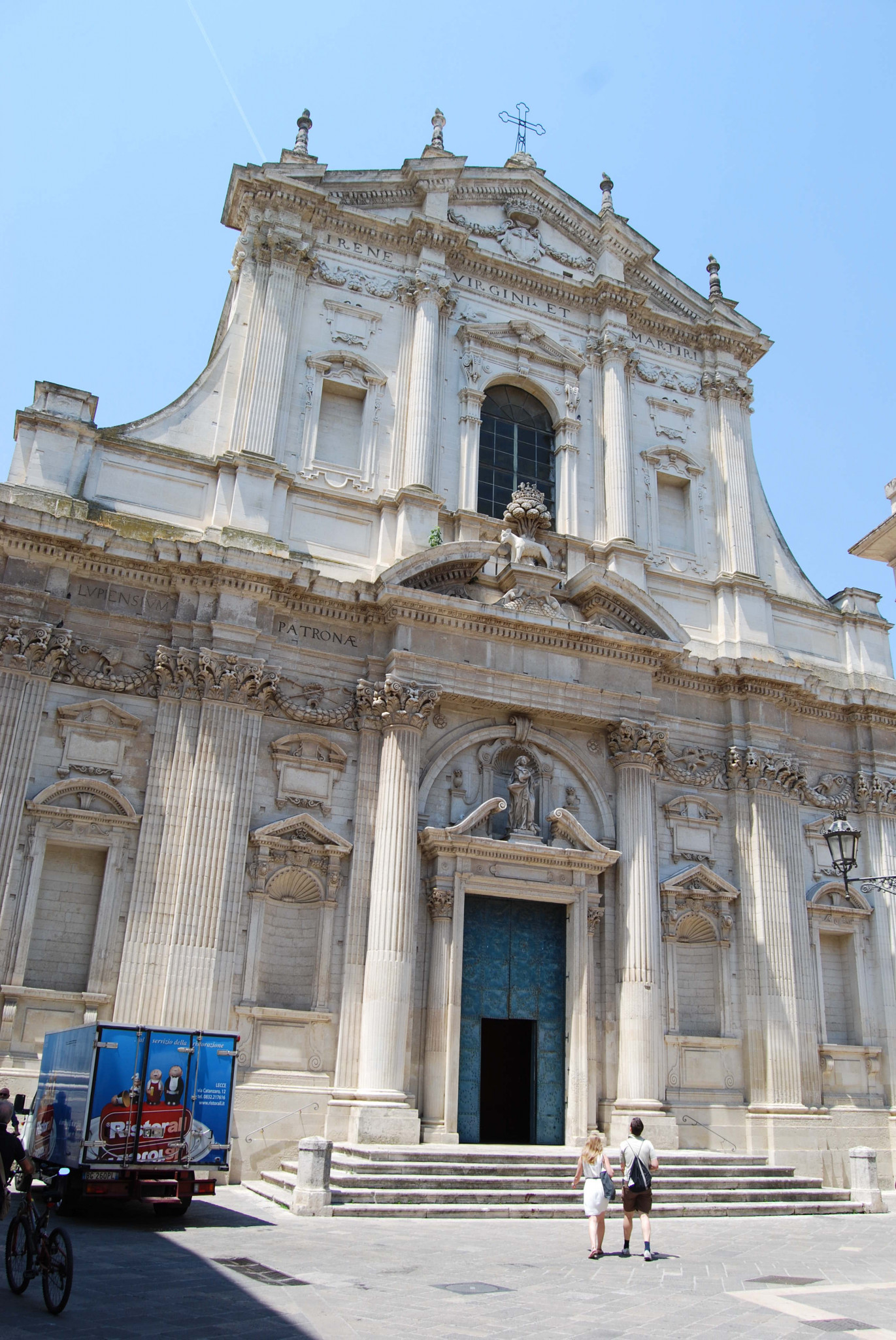 The church is located on Via Umberto I, a narrow street just a short distance from Piazza Sant'Oronzo; there is no large open space in front of it, so it is something of a surprise when the street widens and the dramtic facade comes into view.