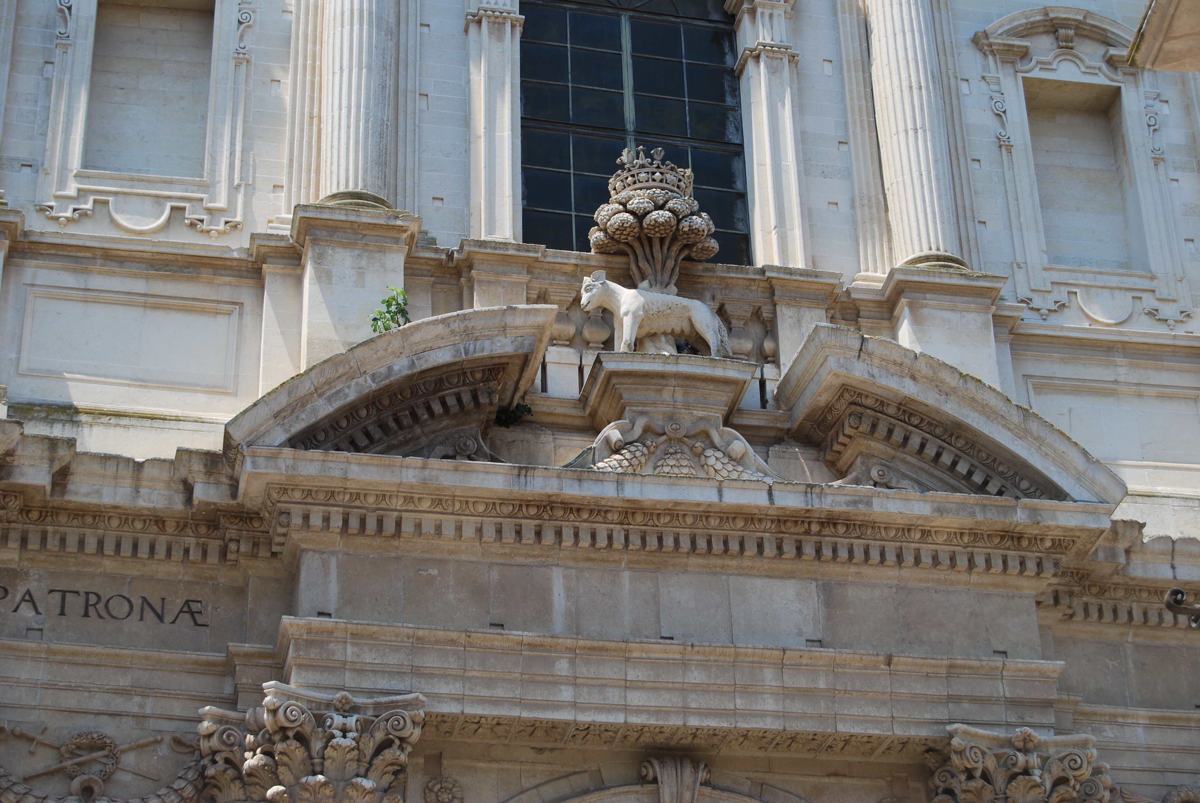The facade is regarded by some experts as a specific celebration of the victory at the Battle of Lepanto in 1571. In this battle, the Western powers defeated the Ottoman Empire, which led to great economic and commercial benefits for all Salento, then known as Terra d’Otranto, which had previously been constantly under siege by the Saracens. The male faces (telamons) dressed as Turks are a reminder of the prisoners captured by the powerful Venetian fleet during the battle. The animals depicted in the balustrade are linked to the allied Christian powers: the dragon was the symbol of the Buoncompagni family of which Pope Gregory XIII was a member; the griffin symbolizes Genoa; the Hercules was associated with the Grand Duke of Tuscany.