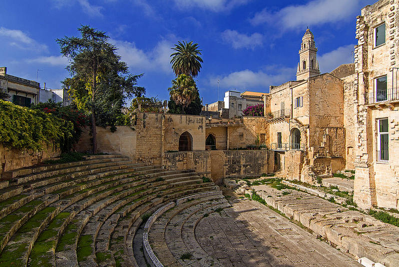 Near the Piazza Sant'Oronzo and the Piazza Duomo, but tucked away in side streets, is another major Roman building, the Roman Theatre (Teatro Romano), not to be confused with the Amphitheatre. This was discovered by accident in 1929, during some works carried out in the gardens of nearby historical palazzi. It has subsequently been excavated, and in 1990 a small museum was attached to it.The museum and theatre are open to the public 9.30am-1.00pm, Monday - Saturday,  charge 3 euros.