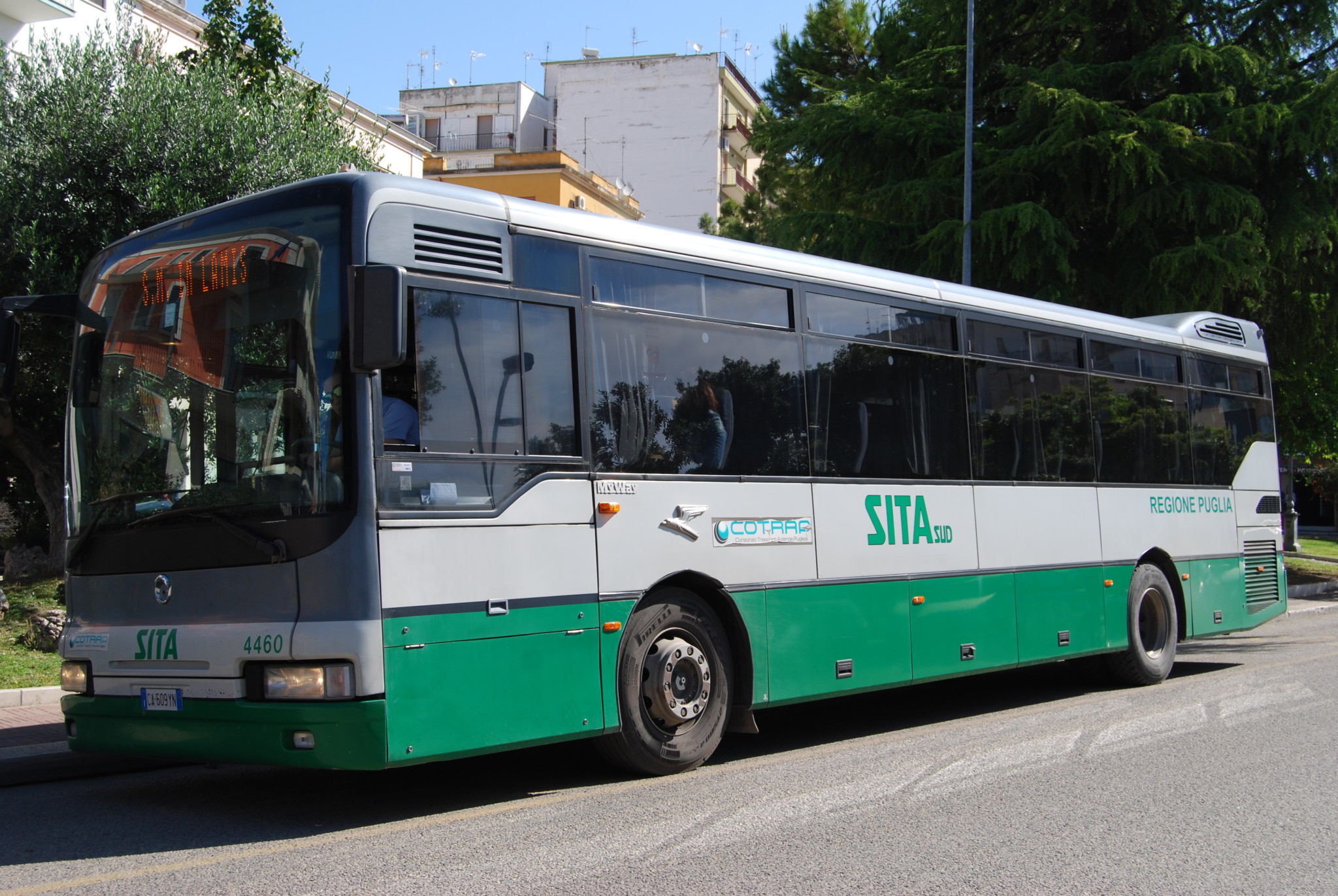 There are (mainly SITA) bus links a few times a day with Foggia (railway station), Manfredonia (Piazza Marconi) and San Giovanni Rotondo. Buses from Foggia go via Manfredonia, and the trip from there up the escarpment is a pretty exciting 30 minutes or so. Until very recently the bus terminus in Monte Sant'Angelo was in the middle of the town at Piazza Duc d'Aosta, not too far from the main attractions. However, it has now been moved to Viale Kennedy, which is very inconveniently situated a long way from where you want to be. (NB This move, to reduce pollution in the town centre, is still controversial, so may be changed). From the new bus stop, go back to the roundabout, turn right and walk up the road for a couple of hundred metres, then turn left at the Post Office into Via Manfredi - then just keep walking steadily uphill for about 20/25 minutes until you reach the old town area. There is a minibus service which connects the bus terminus to the town centre and the old town, but we have not been able to find any reliable details of this.