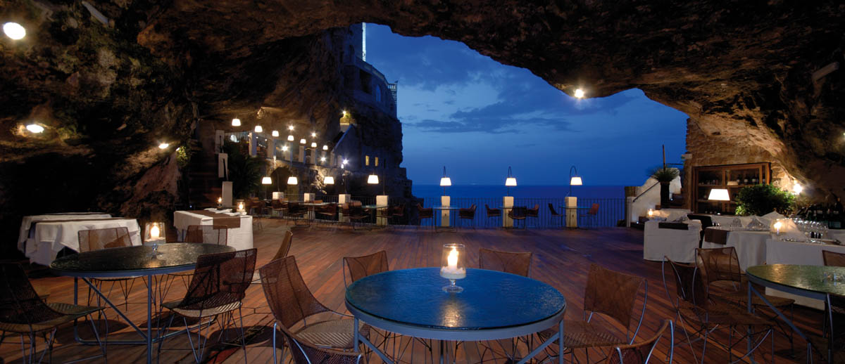 There are several caves in the cliffs of Polignano, including Grotta Palazzese which has been developed as a very exclusive restaurant (and now hotel).