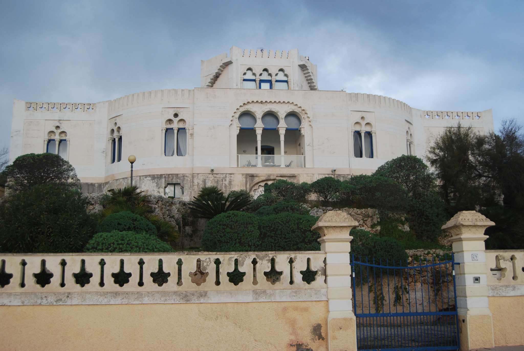 The town was a popular holiday destination for rich Italians for a long time. It was really just a village around the church of Christe Re, still a key landmark. However, its main period of development came in the years after 1874, when Guiseppe Ruggiero, a well known engineer, bought some fields along the shore and decided to build a resort. He started by designing and constructing a villa for himself and his family - the Villa Meridiana, named after a sundial feature over the front door; this is now an important historical feature on the lungomare (promenade). He went on to design a series of villas for rich and fashionable clients, in all kinds of styles, including classical, Moorish and renaissance. These, together with the promenade and viewpoints constructed along the seafront, give the resort an elegant and restrained air which persists to this day.