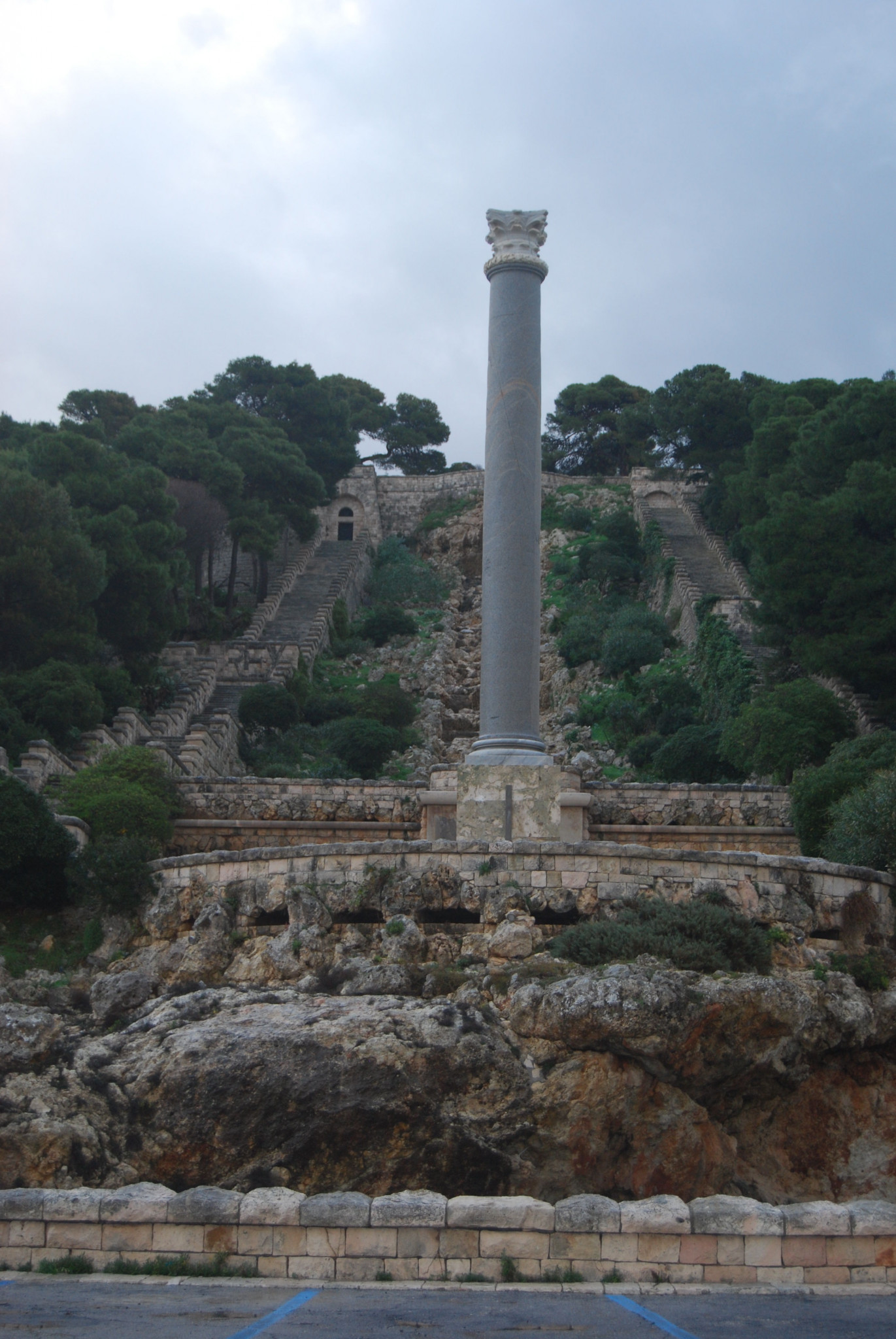 Santa Maria di Leuca is also the end point of the Acquedotto Pugliese, an immense engineering project almost a century in the making. After numerous delays and setbacks, it was finally completed in 1941. Mussolini required a dramatic finish, so here in Leuca was built a man made waterfall for the waters of the aqueduct to spill from, with a fake Roman column at the bottom and flights of steps on either side. You can walk up or down the steps - 300 of them.