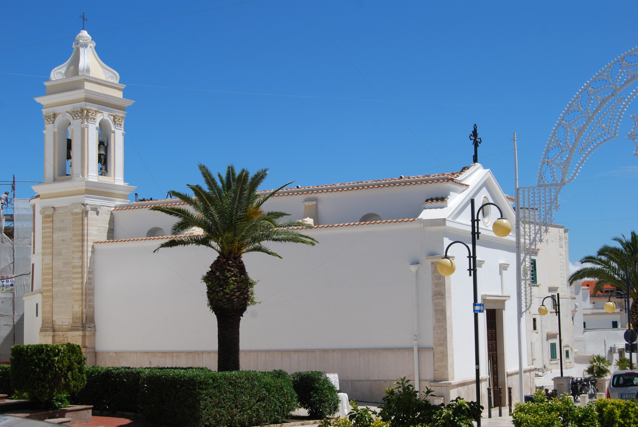 Just below Il Castello, La Cattedrale di Santa Maria Assunta occupies a sloping site in the heart of the centro storico, just rising out of the streets, no imposing piazza in front. Originally built in the XI century, it is one of the oldest Romanesque churches in Puglia, but has been extensively modified and maintained over the years, with the addition of a Baroque style bell tower in 1772 (the original tower collapsed). It is well looked after to this day. Inside is a XVI century wooden sculpture Santa Maria di Merino, one of the two patron saints of Vieste - the statue was supposedly found by fishermen on a beach, followed by an argument (won by Vieste) as to whether it should come here or to Peschici. Access to La Cattedrale involves a flight of steps in front of the entrance; it is closed from midday until 4.00pm. (Note - there is a stylish bar in an old building just across the narrow street from the entrance, which is open at lunchtime!).