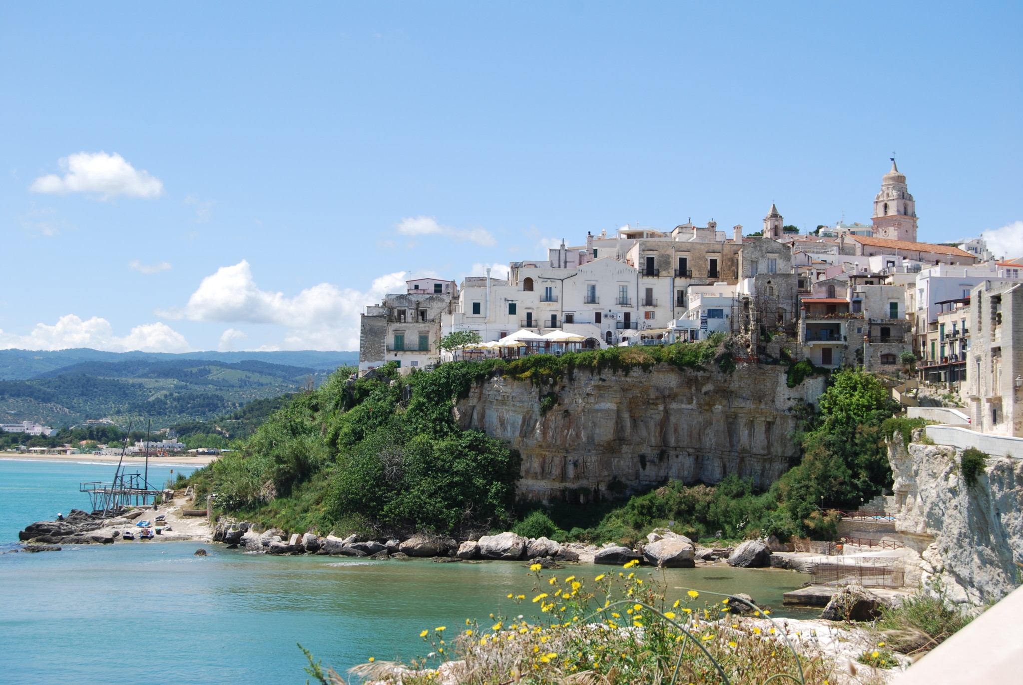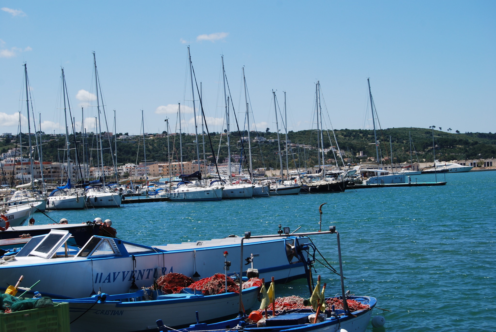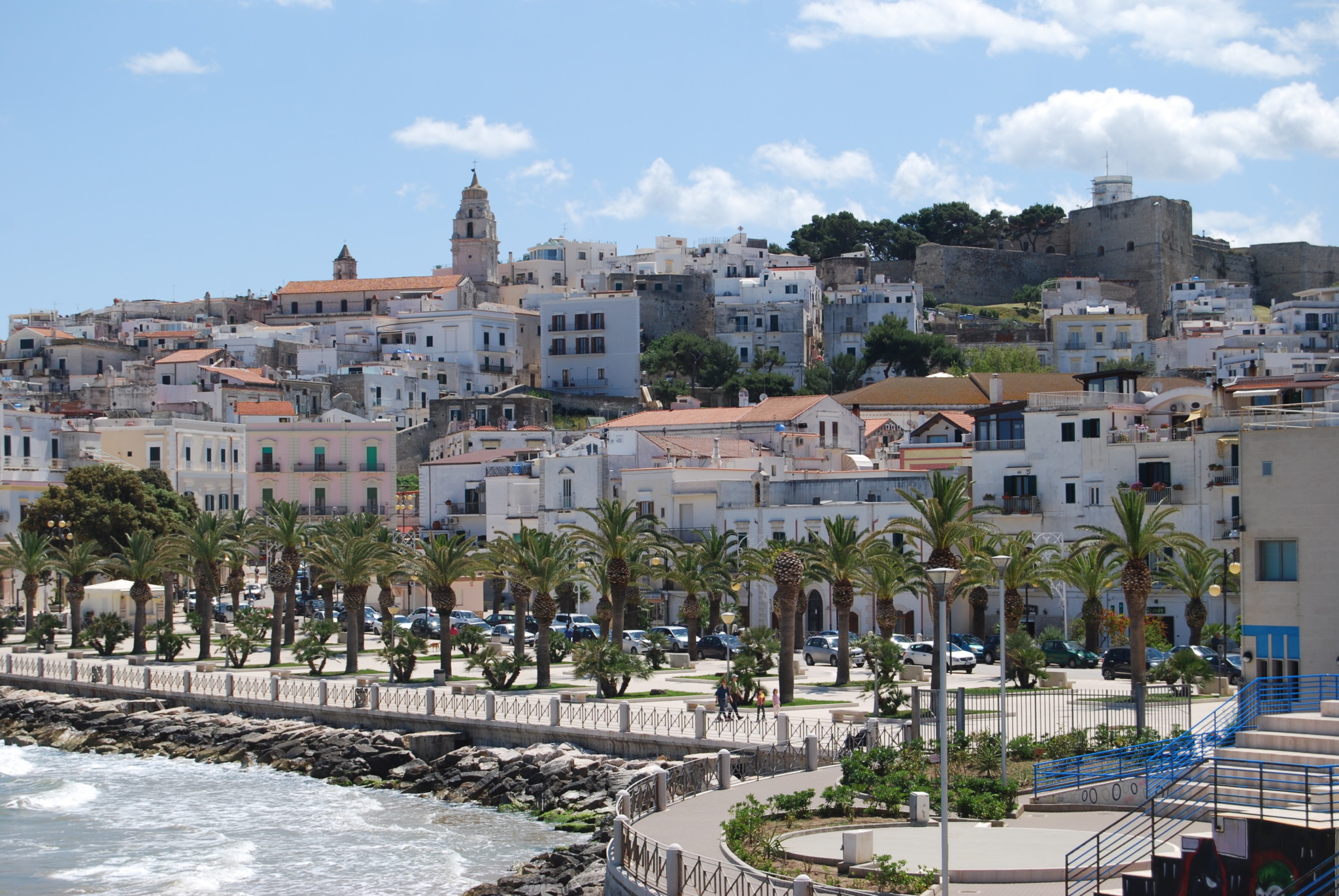This part of the seafront is separated by a small headland from the large port and marina area, providing berths for numerous sailing and motor yachts and occasional cruise ships. This is also the base for two hour boat trips to view the coastal grottoes, and day long boat trips to the Isole Tremiti (if you want to visit the islands, a better bet is to go from Peschici or Rodi which are much nearer).