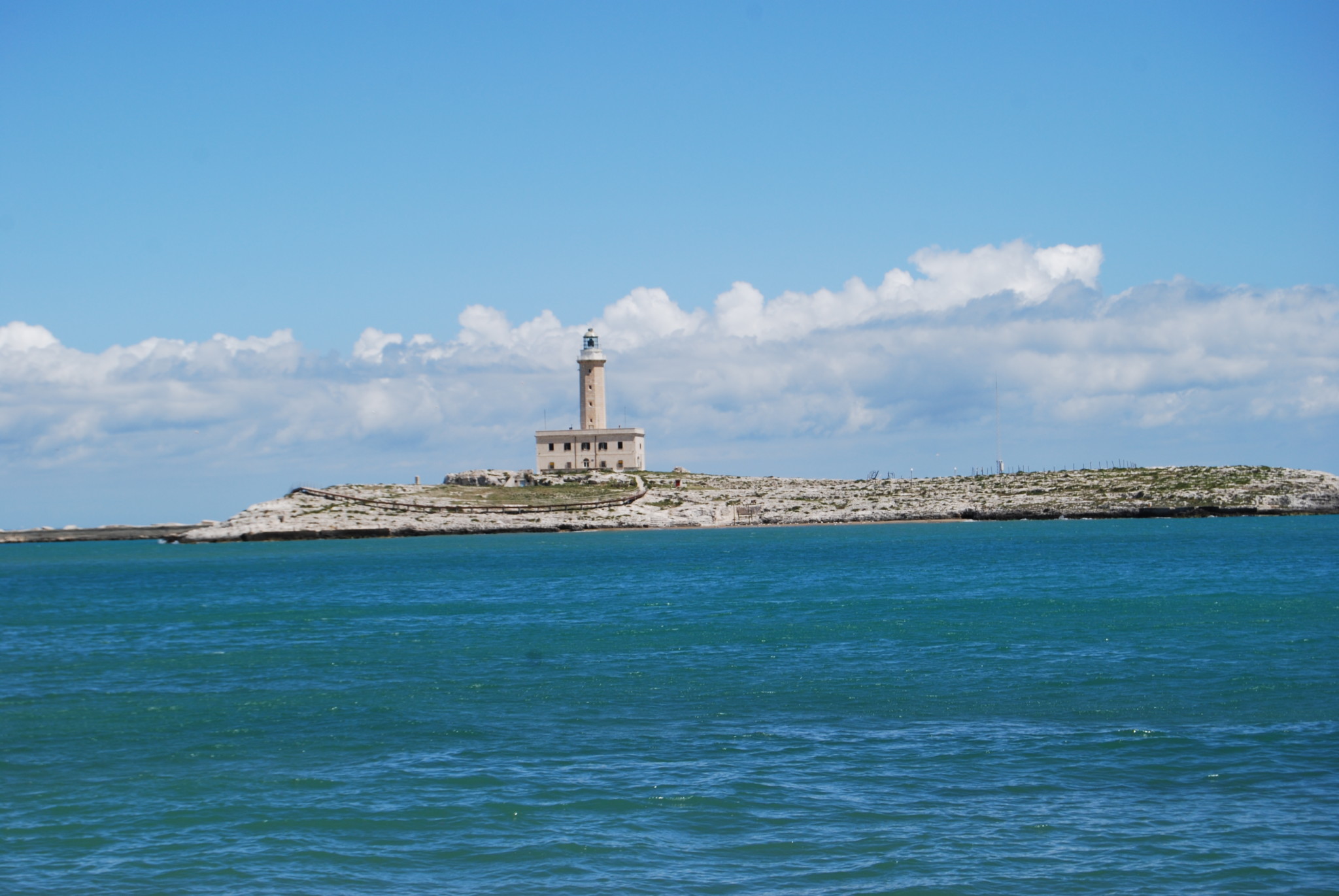 From the seafront promenade on the left beyond the piazza there is a good view of Il Faro, Vieste's lighthouse, on the nearby Isola Sant' Euphemia. The lighthouse was built in 1867 and sits on top of a building which in the past housed the lighthouse keepers (fanalista). The island is now uninhabited, the light is operated automatically. In 1987 a cave was discovered on the island containing 200 inscriptions in Greek and Latin dating from about the 3rd century BC.